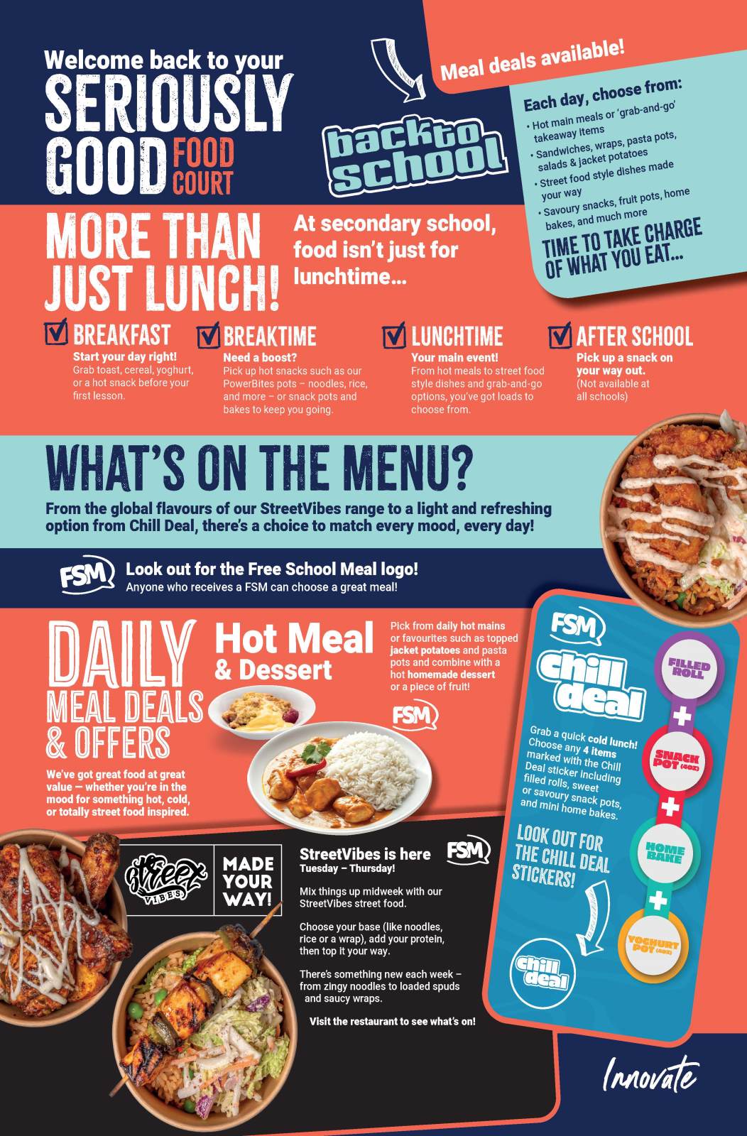 From September our catering provider will be Innovate Services Ltd, an award-winning company who began in 2007 when they were invited into a Senior School to transform their catering facilities and keep more students onsite at lunchtime. They have rapidly grown until today and now serve over 350 senior schools and colleges and 160 primary schools across the country. They form part of a larger group called Impact Food Group (IFG) made up of their sister companies Cucina and Chapter One. They are an education catering specialist with a vision of “Transforming lives through the power of food”. We are very excited about our new partnership with Innovate.